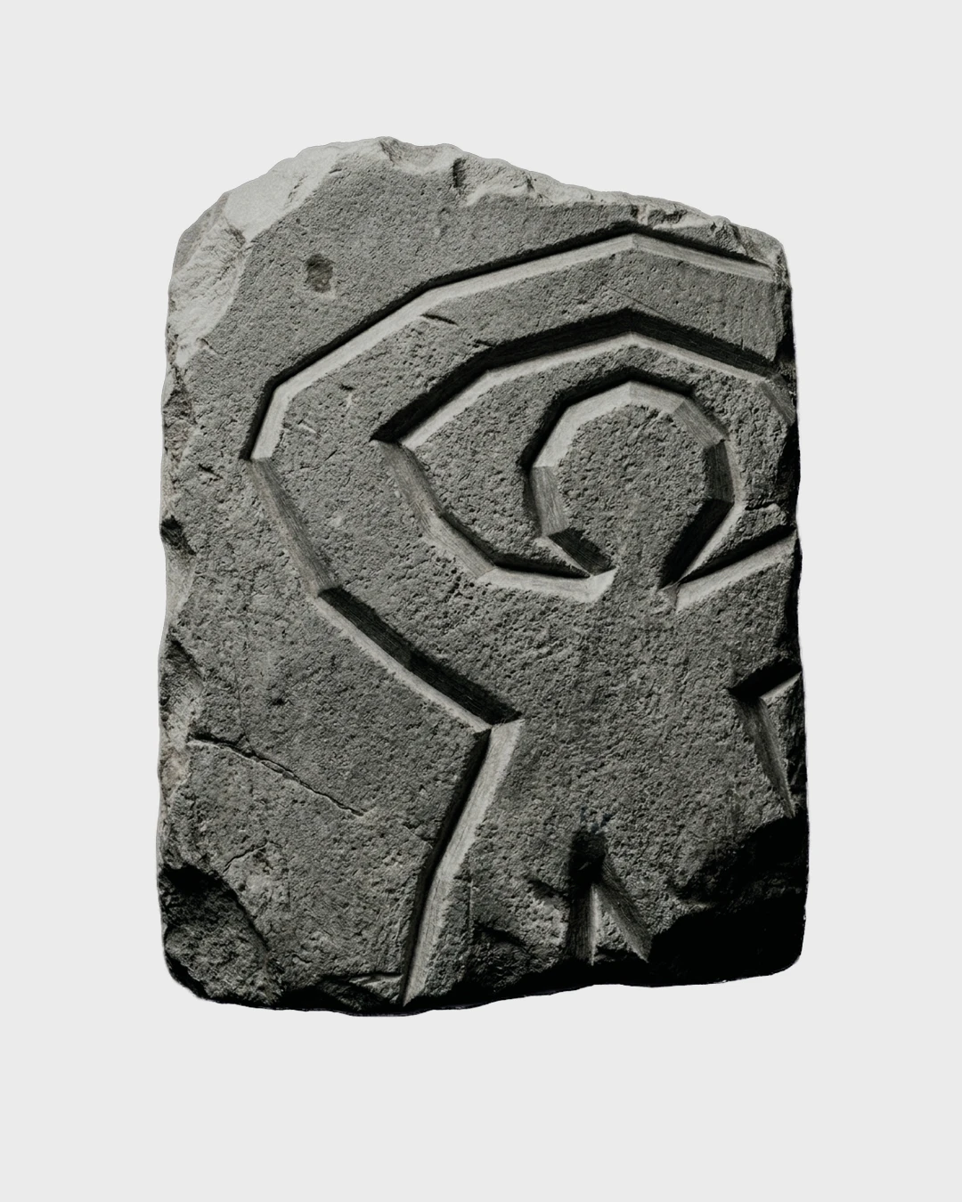 A standing figure with arms encircling their head, the logo embodies the imperfection inherent in art and tribalist forms of pictorial expression from the earliest human acts of mark-making.